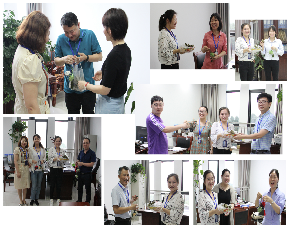 在“送祝福”現(xiàn)場,大家將親手包出的香粽和精心制作的香囊送到各部門、各單位的員工手中,一聲“端午安康”、一句“工作順利”……真誠的笑容洋溢在員工臉上,美好的祝愿穿梭在心靈之間,大家團結(jié)著、勉勵著、祝福著,共同表達著對公司發(fā)展的美好祝愿。