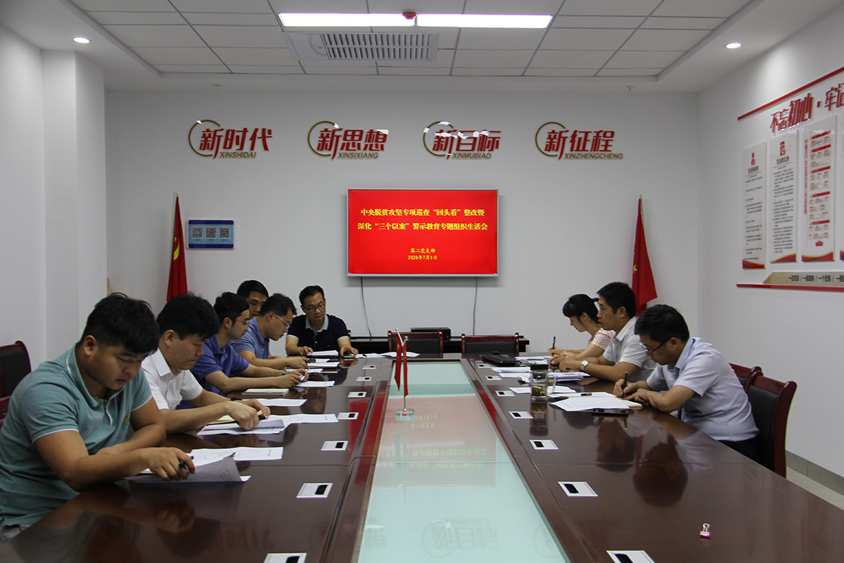 7月1日下午,第二黨支部第一黨小組召開中央脫貧攻堅專項巡查“回頭看”整改暨深化“三個以案”警示教育專題組織生活會,集團黨委宋道河及全體黨員參加了會議。