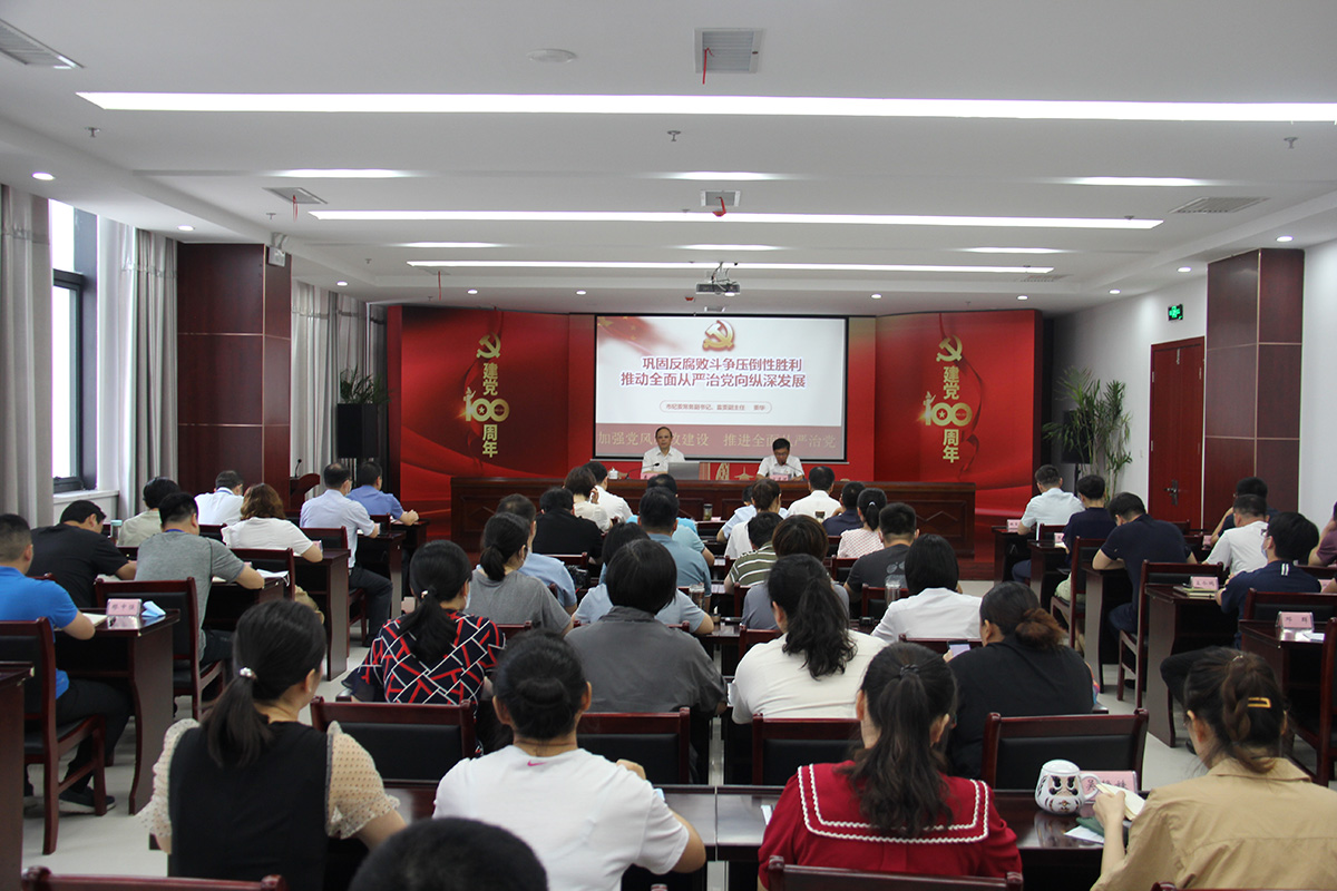 為持續(xù)深化全面從嚴(yán)治黨向縱深推進(jìn),切實(shí)增強(qiáng)黨員干部紀(jì)律意識(shí)和規(guī)矩意識(shí),為高質(zhì)量轉(zhuǎn)型發(fā)展提供堅(jiān)強(qiáng)政治保障和組織保障。7月23日上午,公司黨委邀請(qǐng)市紀(jì)委常務(wù)副書記、市監(jiān)委副主任姜華作黨風(fēng)廉政建設(shè)教育專題講座。黨委副書記、副董事長(zhǎng)、總經(jīng)理宋道河主持會(huì)議,班子成員,全體黨員干部職工和二級(jí)機(jī)構(gòu)負(fù)責(zé)人參加會(huì)議。