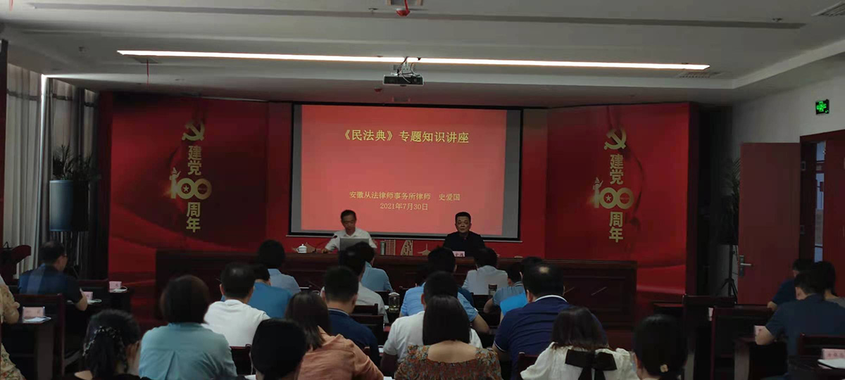 今年是《中華人民共和國(guó)民法典》頒布一周年,為突出學(xué)習(xí)宣傳習(xí)近平法治思想,深入了解民法典一系列新規(guī)定新概念新精神,大力弘揚(yáng)社會(huì)主義法治精神,7月30日下午,淮南建發(fā)集團(tuán)開展了民法典專題知識(shí)講座。
