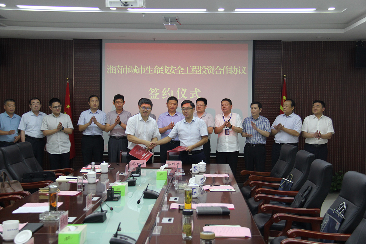上午10:30,在淮南建發(fā)集團(tuán)會(huì)議室,清華大學(xué)合肥公共安全研究院副院長梁光華與淮南建發(fā)集團(tuán)黨委副書記、副董事長、總經(jīng)理宋道河就淮南市城市生命安全工程組建合資公司簽訂投資合作協(xié)議,清華大學(xué)合肥院院長助理李隴清,國開行安徽分行客戶一處高級(jí)經(jīng)理孟君,城市生命線安全工程建設(shè)推進(jìn)工作領(lǐng)導(dǎo)小組成員單位負(fù)責(zé)人參加了簽約儀式。