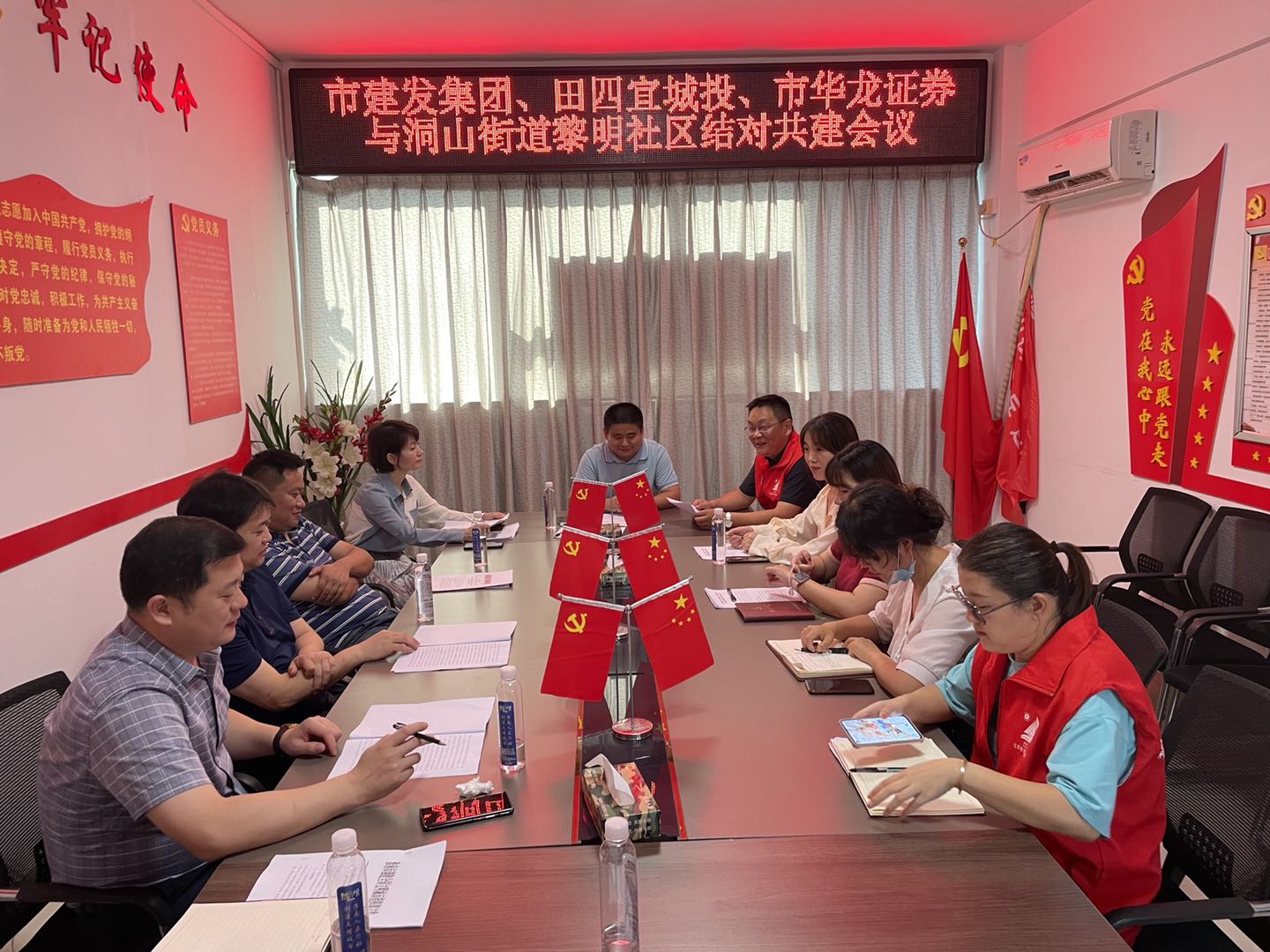 為認真貫徹落實市委市政府關于創(chuàng)建全國文明城市工作部署,持續(xù)加大與結對社區(qū)結對共建力度,9月10日下午,建發(fā)集團與田區(qū)四宜建投集團、華龍證券、田區(qū)洞山街道黎明社區(qū)召開聯(lián)席會議,就結對共建的工作重點、共建方案等開展調研座談。建發(fā)集團黨委副書記高友祿、四宜建投集團董事長余宏偉、華龍證券淮南朝陽西路證券營業(yè)部總經理姚登輝、洞山街道黨工委副書記胡傳松、黎明社區(qū)黨總支書記張賢及有關人員參加會議。