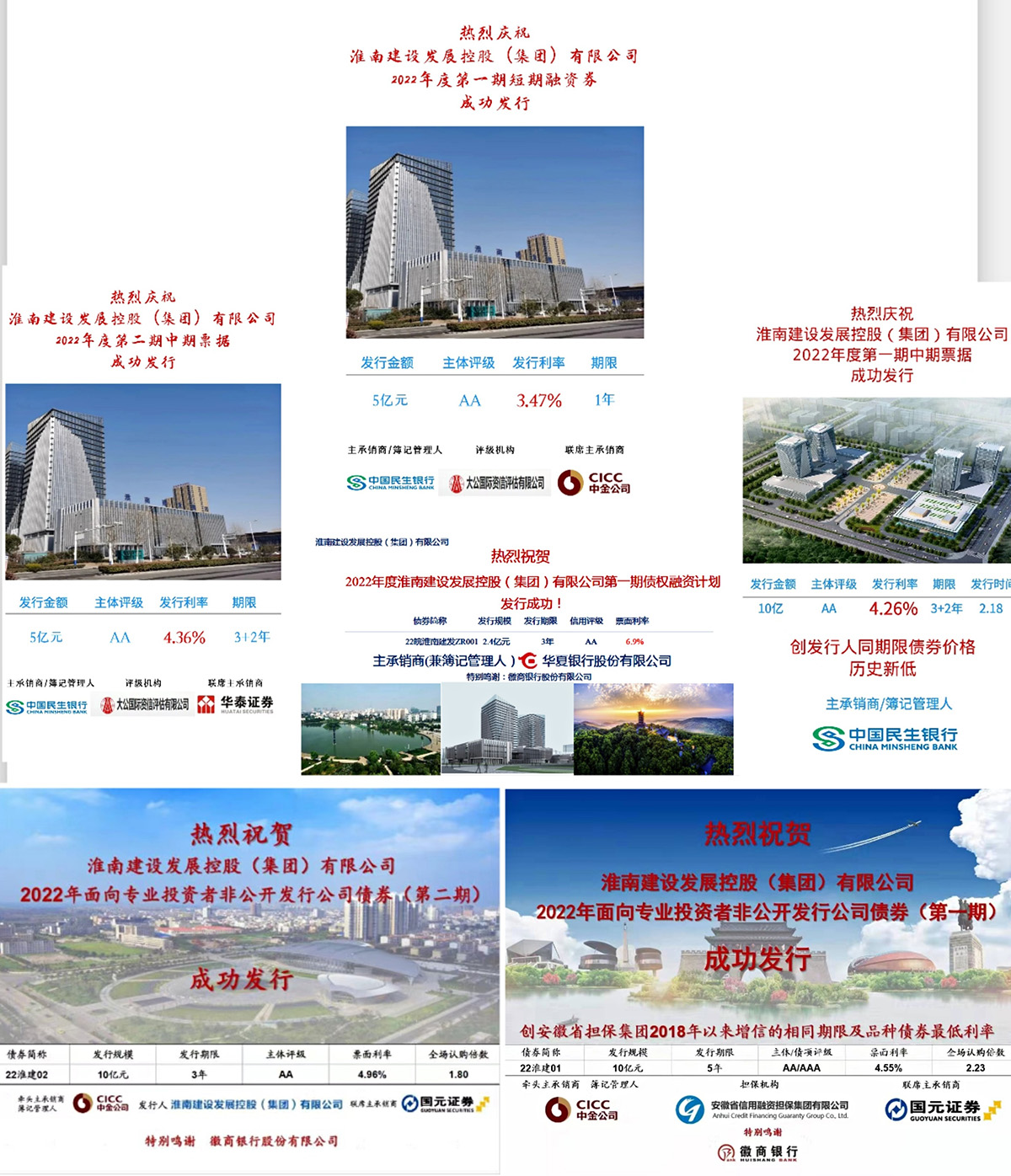 2022年3月29日,建發(fā)集團(tuán)成功發(fā)行公司首筆短期融資券,債券簡(jiǎn)稱(chēng):22淮南建發(fā)CP001、發(fā)行規(guī)模5億元、 票面利率3.47%、認(rèn)購(gòu)倍數(shù)達(dá)2.74倍。本期債券在主承銷(xiāo)商的共同努力下,在較短時(shí)間內(nèi)完成了債券注冊(cè)與發(fā)行工作。