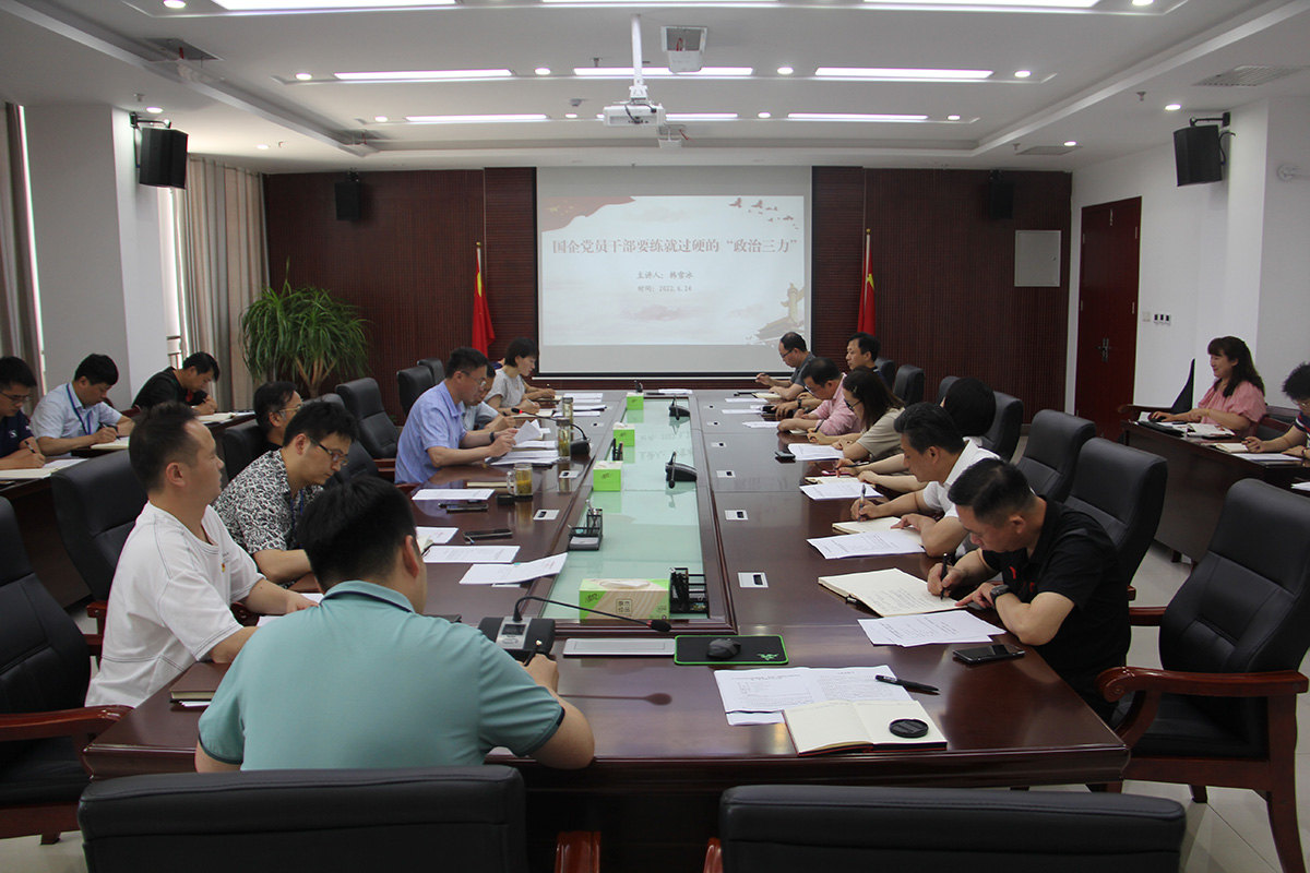 韓雪冰結合黨的十九屆六中全會精神,圍繞習近平總書記關于黨員領導干部要提高政治判斷力、政治領悟力、政治執(zhí)行力重要指示精神,結合工作實際指出作為國企黨員干部,具備過硬的“政治三力”對有效貫徹落實黨中央決策部署和黨的紀律制度具有重要意義。強調全體黨員干部要團結帶領群眾,樹立高度的政治責任和政治意識,以過硬的“政治三力”守好責任田,夯基礎、練本領、提效能,為企業(yè)高質量發(fā)展作出應有貢獻。