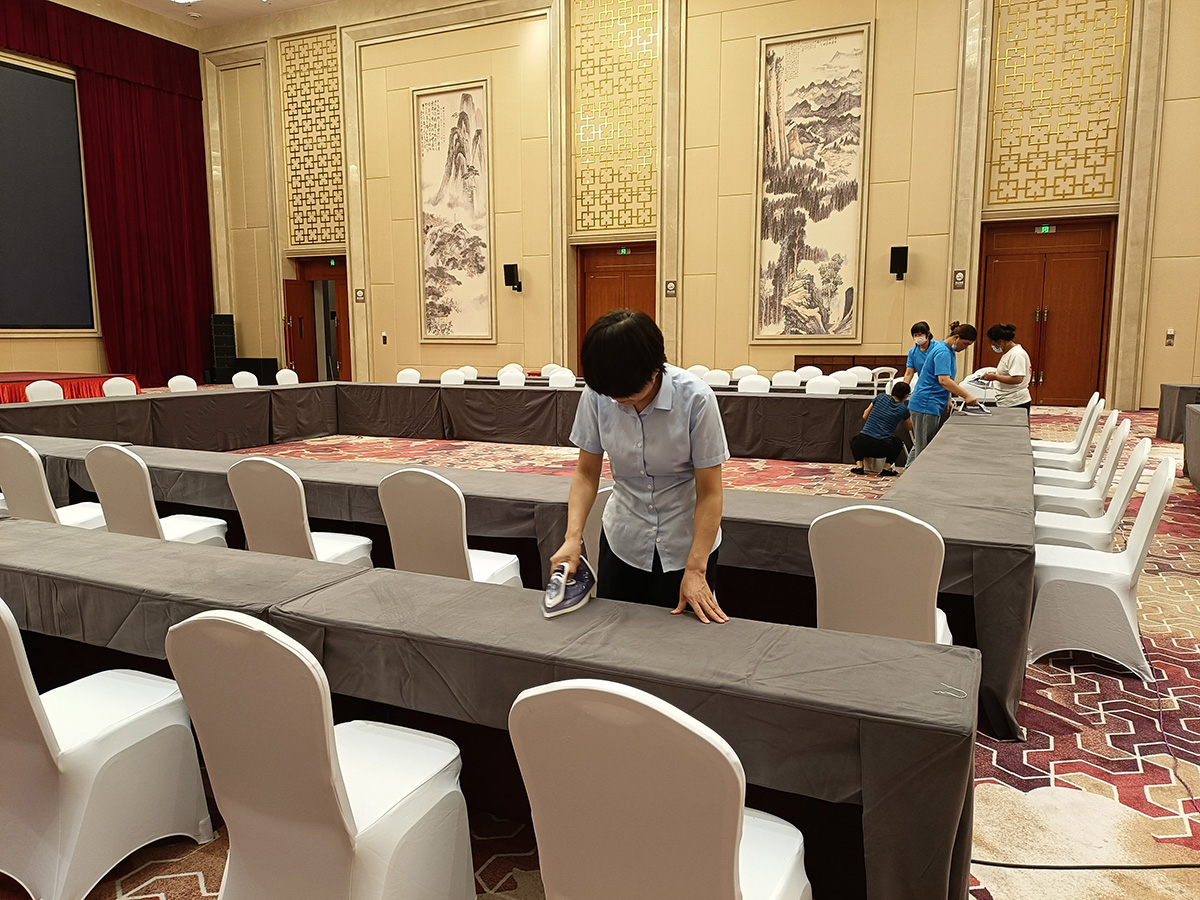為保證本次會議的順利圓滿舉辦,飯店精心部署,周密安排,提前制定專屬接待方案和應(yīng)急預(yù)案,落實疫情防控和各項檢查布置工作。會議召開前,要求酒店全員核酸檢測,確保代表們的安全;大廳出入口,設(shè)置電子測溫儀,實時測量體溫;各個用餐地點均擺放充足的防疫物資??头糠?wù)嚴(yán)格按照既定方案,在重點做好規(guī)范消毒工作的同時,每日三次整理,主動用心做事,清潔到邊到角,衛(wèi)生見細見微。