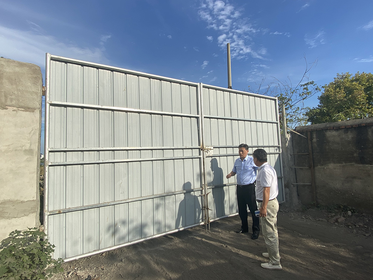 樊書寶一行前往礦區(qū)內(nèi)檢查各處可能存在的安全隱患,督促物業(yè)單位做好安全防護措施,同時要求物業(yè)單位禁止閑雜人員進入廠區(qū)造成安全事故。隨后樊書寶一行與物業(yè)單位一同前往礦區(qū)東部圍墻處現(xiàn)場勘查淮南市競美園林綠化有限公司借路通行情況。在該公司借路期間,屬地政府多次收到群眾舉報并向我公司反饋,存在占用謝一礦場地晾曬煤泥及大型貨車拉運煤泥通行揚塵現(xiàn)象,對生態(tài)環(huán)境造成嚴重污染,實地核實情況后責(zé)令其停止上述違規(guī)行為并終止該公司道路臨時借用要求,并由物業(yè)管理人員現(xiàn)場更換東門門鎖。