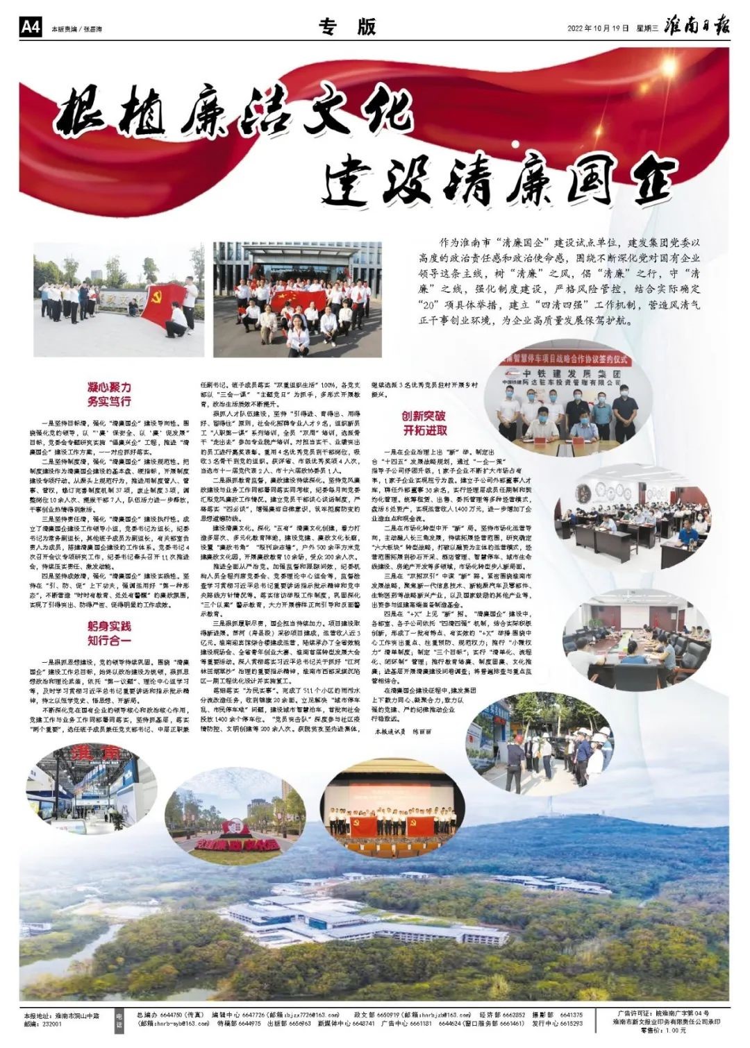 2022年10月,《淮南日?qǐng)?bào)》專版、學(xué)習(xí)強(qiáng)國(guó)刊載了集團(tuán)公司“清廉國(guó)企”建設(shè)試點(diǎn)工作情況。