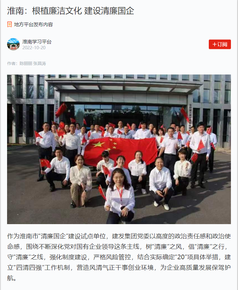 《淮南日?qǐng)?bào)》專版、學(xué)習(xí)強(qiáng)國(guó)刊載建發(fā)集團(tuán) “清廉國(guó)企”建設(shè)試點(diǎn)工作紀(jì)實(shí)