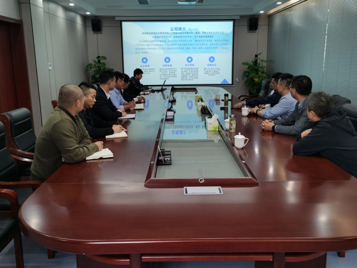 考察組首先參觀了淮南智泊公司的指揮中心,觀看了智慧停車宣傳片。隨后,雙方舉行合作洽談座談會。會上,張輝對陳宏偉一行的到訪表示歡迎,介紹了淮南智慧泊車管理有限公司的基本情況、正在實施的項目及運營模式,并對鳳臺縣顧橋鎮(zhèn)周圍違章停車過多的問題提出了多種處理解決方案,對貨運停車場合作方案提出了建設(shè)性意見。