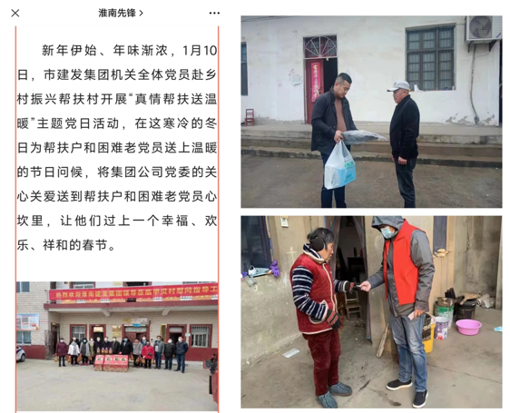為切實強化黨建引領,增強基層黨組織的政治功能和組織功能,加強黨內(nèi)激勵關懷幫扶。建發(fā)集團黨委將黨內(nèi)政治生活與社會幫扶、關心關愛職工、企業(yè)發(fā)展充分融合,以“主題黨日活動”為契機,引導全體黨員始終堅持亮身份、強服務,充分發(fā)揮黨組織戰(zhàn)斗堡壘作用。在“春節(jié)”期間,組織黨員干部赴鄉(xiāng)村振興幫扶村、退休老黨員和老干部家中開展新春慰問主題黨日活動,并入選淮南先鋒網(wǎng)優(yōu)秀主題黨日活動案例。