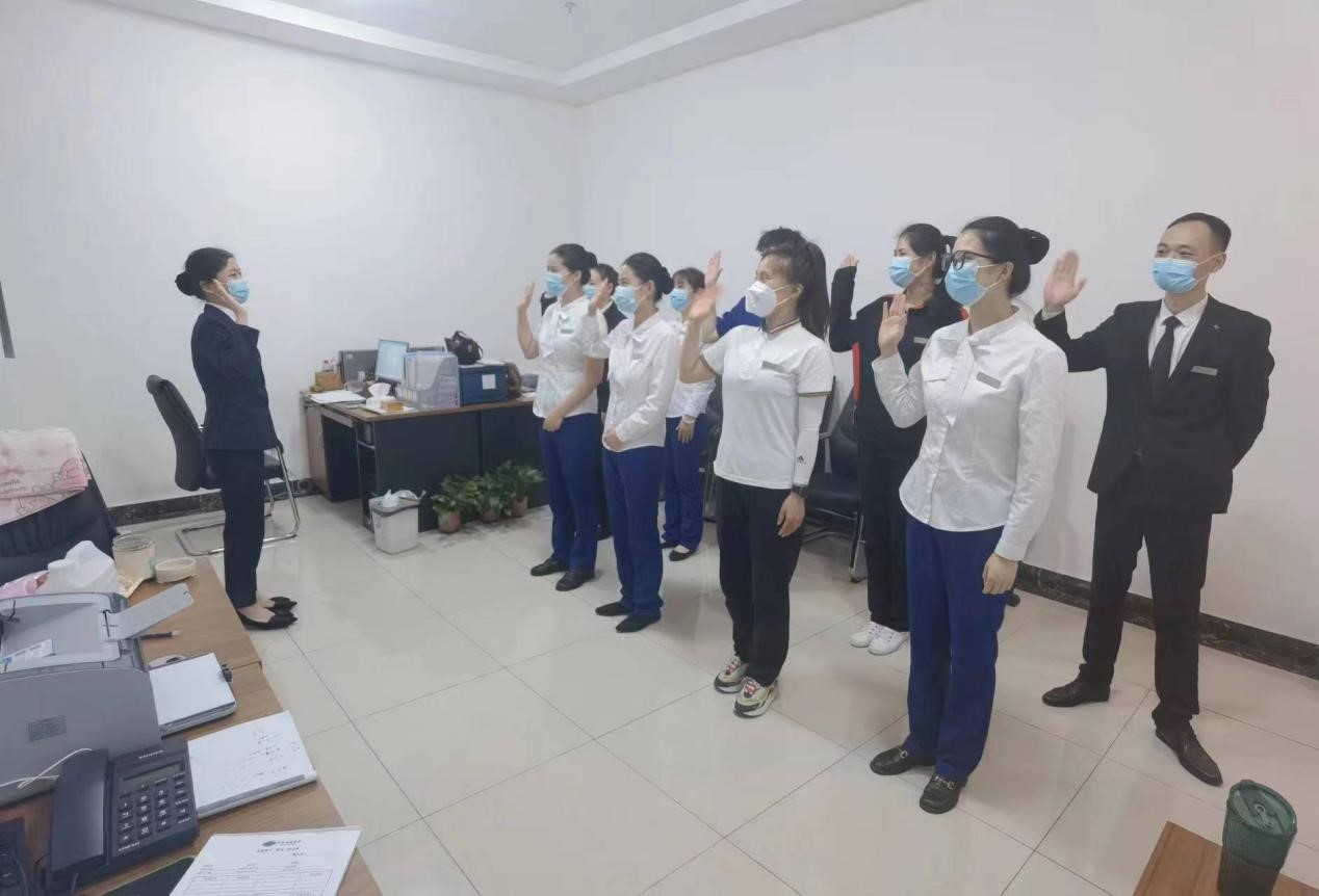 五月份,淮南迎賓館開展了招手禮培訓(xùn)教育活動(dòng),通過在員工打卡處和員工食堂循環(huán)播放招手禮儀視頻營(yíng)造學(xué)習(xí)氛圍,行政人事部深入部門班前會(huì)現(xiàn)場(chǎng)授課教學(xué),部門督促員工將招手禮儀運(yùn)用在對(duì)客服務(wù)之中,每日質(zhì)檢全員落實(shí)情況。