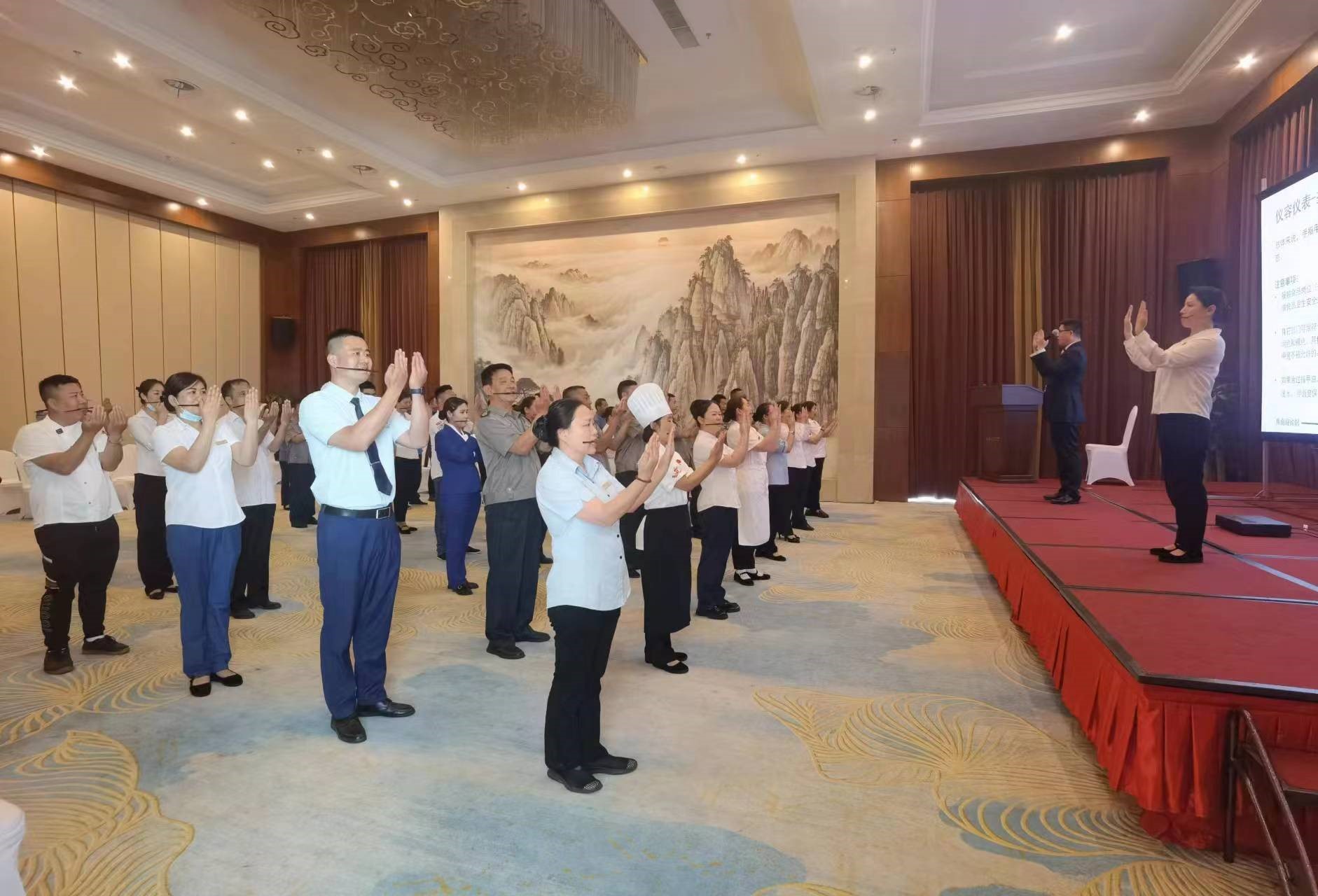 活動內容分為宣傳、“迎賓有禮”專業(yè)化塑造、“崗位有我”責任意識和服務意識提升和成果驗收四個階段,6月12日至6月26日為專業(yè)化塑造階段,行政人事部組織酒店員工分四批集中進行形體動作、儀容儀表、禮貌禮節(jié)培訓,建立酒店統(tǒng)一標準。