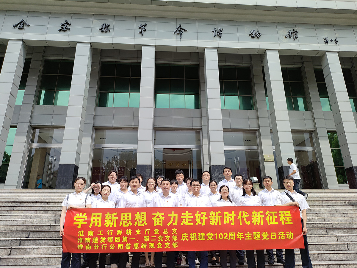 為慶祝中國共產(chǎn)黨成立102周年,弘揚偉大建黨精神,集團公司第一、二黨支部同淮南工行舜耕支行黨總支、淮南分行公司普惠結(jié)現(xiàn)黨支部走進革命老區(qū)金寨,聯(lián)合開展“學(xué)用新思想 奮力走好新時代新征程”主題黨日活動。
