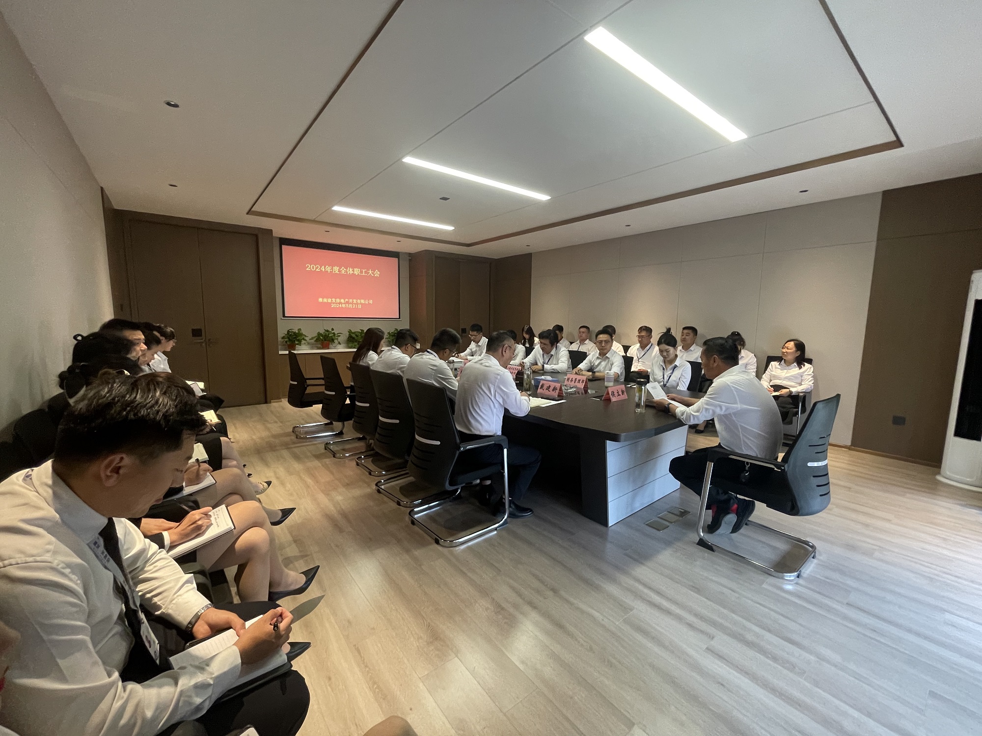 為進一步加強公司制度化科學管理、規(guī)范運作,維護公司的正常運轉和規(guī)范組織內(nèi)部管理和職工行為準則,保障職工的權益。5月21日下午,淮南建發(fā)房地產(chǎn)開發(fā)有限公司董事長兼總經(jīng)理侯立新在如意庭營銷中心二樓會議室主持召開2024年度第一次全體職工大會,公司全體職工參加會議。