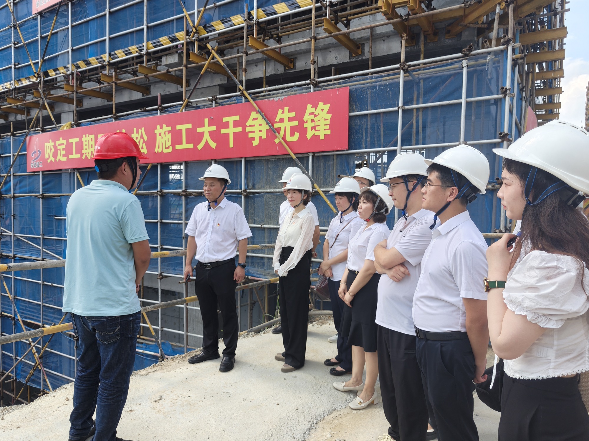 座談會后,全體黨員赴項目現(xiàn)場進(jìn)行了參觀,感受項目建設(shè)人員在驕陽下?lián)]汗如雨的火熱場面,感受拔地而起的樓宇彰顯出的建發(fā)速度,感受團結(jié)一致努力拼搏的堅定決心,紛紛表示要銘記黨的光輝歷史、堅定理想信念、凝聚奮進(jìn)力量,把愛黨愛國的熱情轉(zhuǎn)化為推動集團公司高質(zhì)量發(fā)展的實際行動。