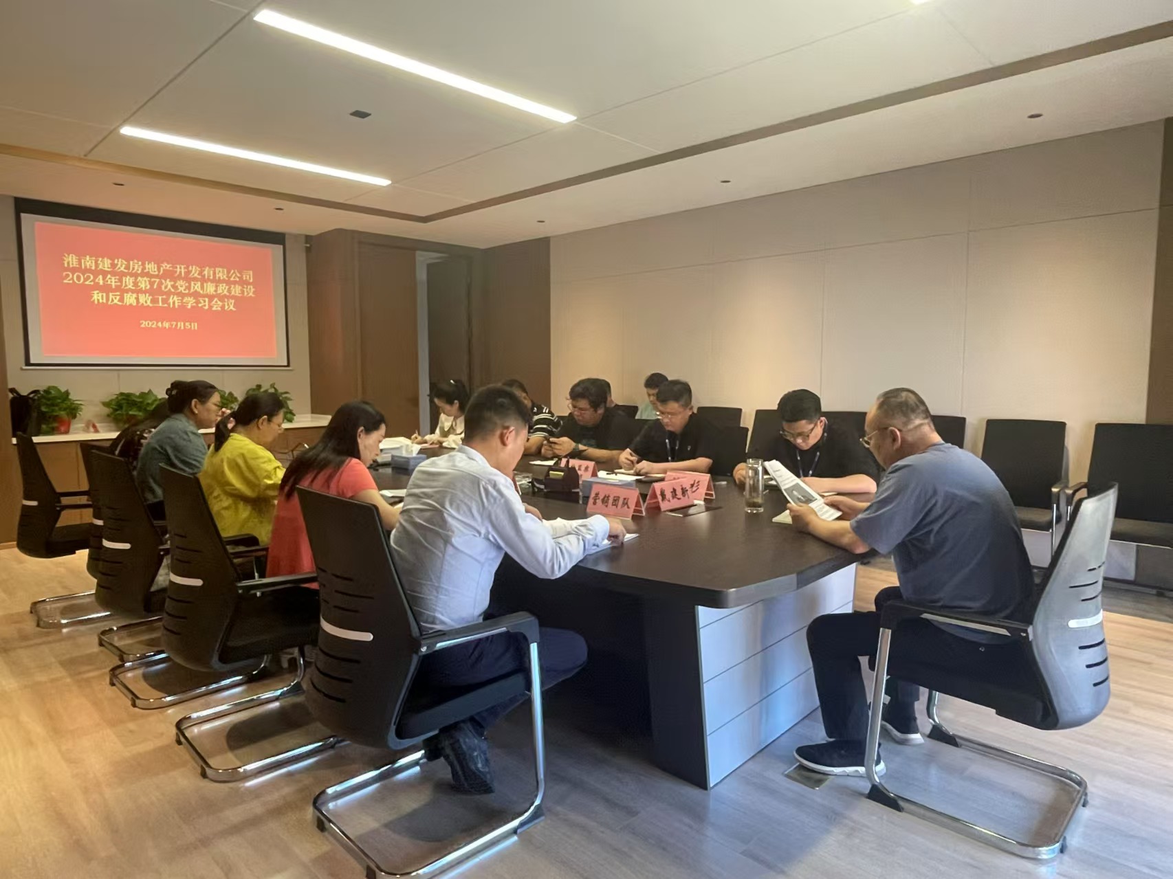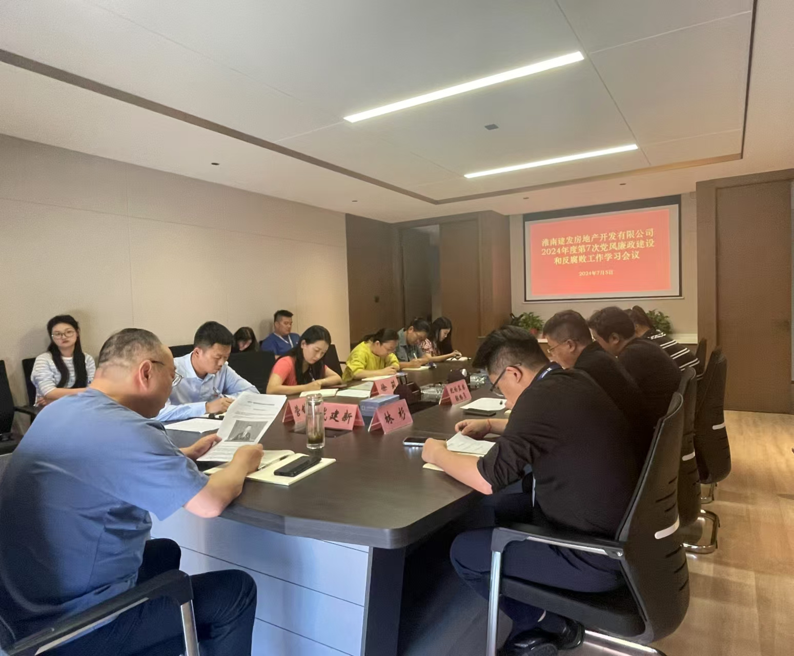 7月5日下午,淮南建發(fā)房地產(chǎn)開(kāi)發(fā)有限公司在如意庭營(yíng)銷(xiāo)中心2樓會(huì)議室召開(kāi)2024年度第7次黨風(fēng)廉政建設(shè)和反腐敗工作學(xué)習(xí)會(huì)議,項(xiàng)目總經(jīng)理戴建新主持,公司全體員工參加會(huì)議。